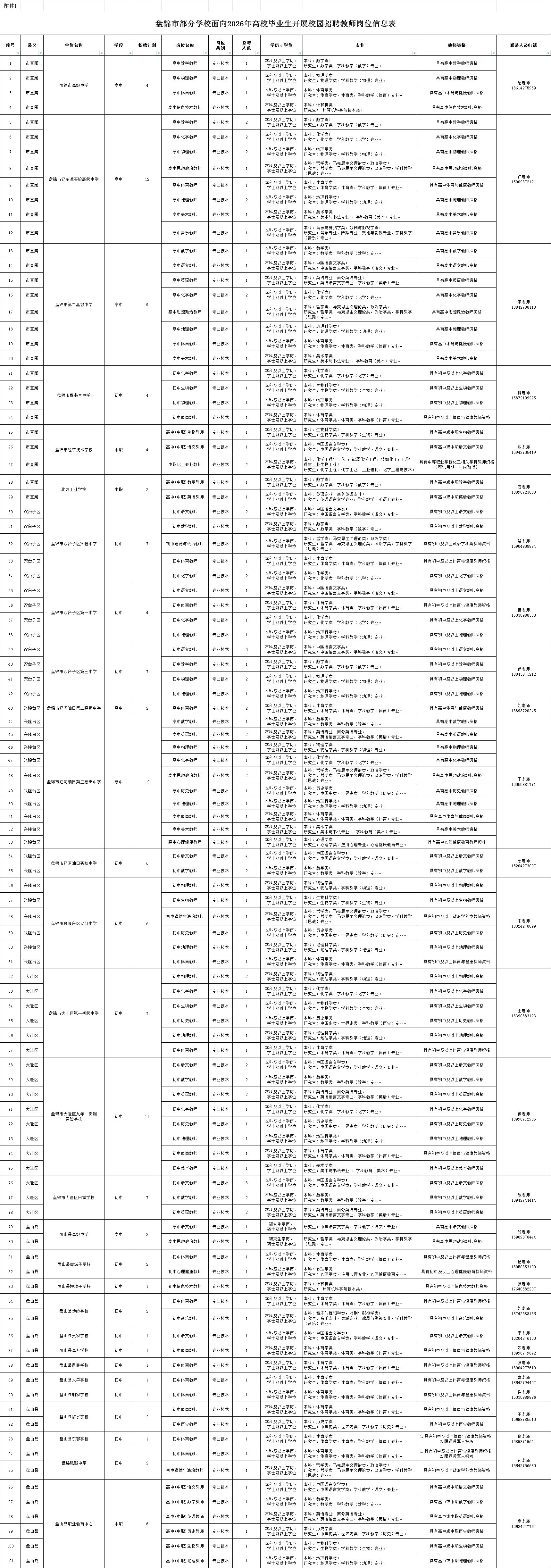附件:1.盤錦市部分學(xué)校面向2026年高校畢業(yè)生開展校園招聘教師崗位信息表